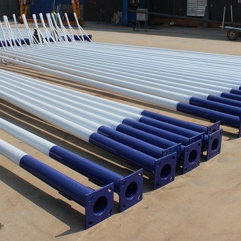 El poste de luz de calle se refiere a todos los postes utilizados para las luces de calle. Incluye las partes del eje del poste, la brida de la base, los soportes de los brazos de montaje y los pernos de anclaje.Si el faro de la calle está enterrado directamente en el suelo, no hay una brida base.